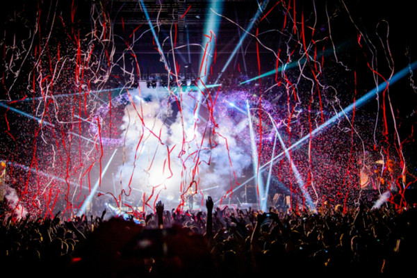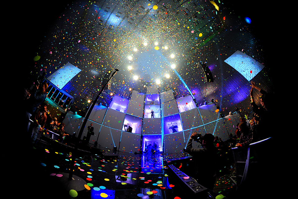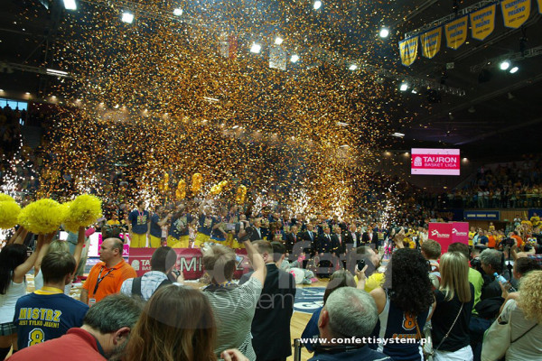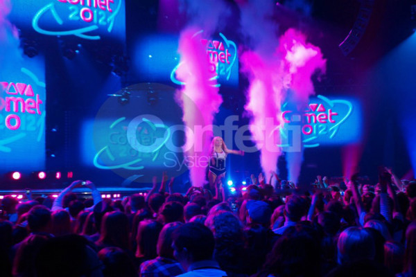 Maszyny służące do pokazów mogą strzelać z ziemi lub bezgłośnie zrzucać kurtynę z confetti spod sufitu.
