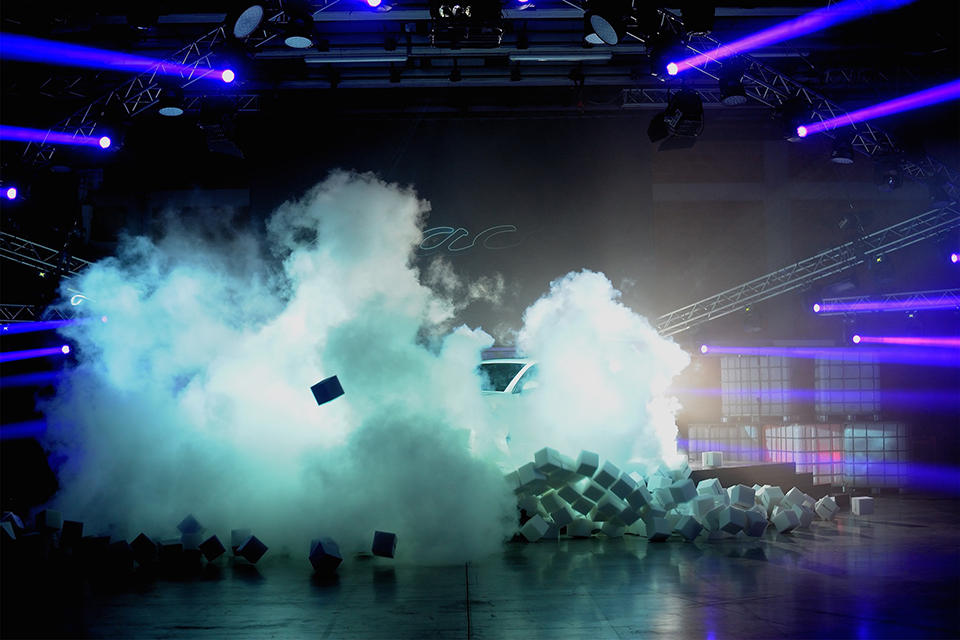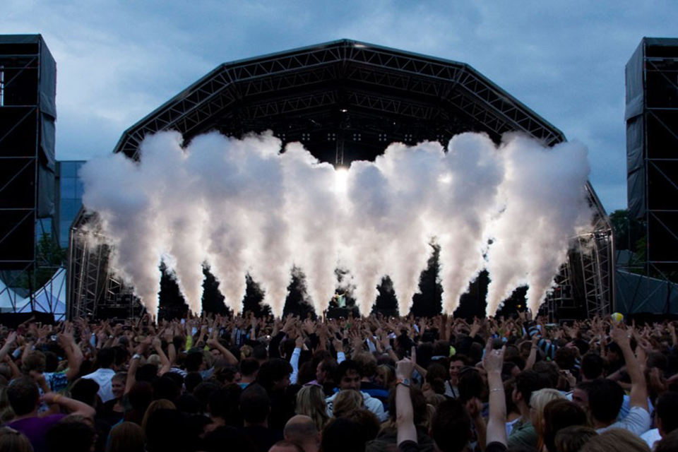 Rozprężony, ciekły dwutlenek węgla wypuszczany wąskimi dyszami tworzy spektakularne słupy pary do 8 metrów wysokości. Efekt ten świetnie współgra z dynamiczną muzyką. Słupy pary można zaś podświetlić niemal dowolnym kolorem światła.